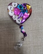 Custom name badge reel, mosaic badge reel, beads badge reel, blue mosaic badge reel, pink mosaic ...