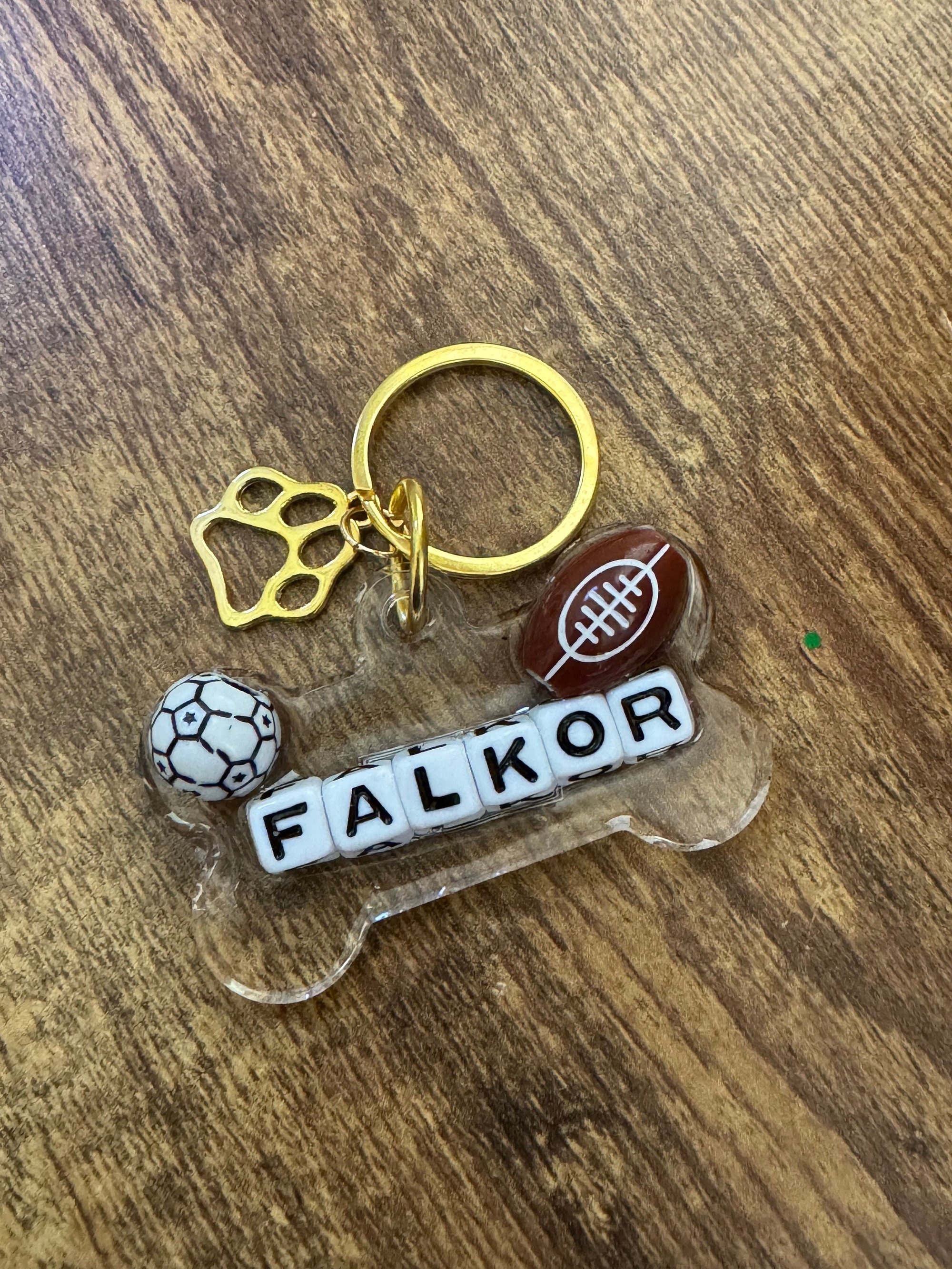 Each dog tag is handmade by me using uv resin, this is with a 3d effect of the sports charm (soccer or football or both) Every tag is customized with your pet’s name. You have an option to choose of dog tag only or with nfc tag so the phone number is linked in the tag.