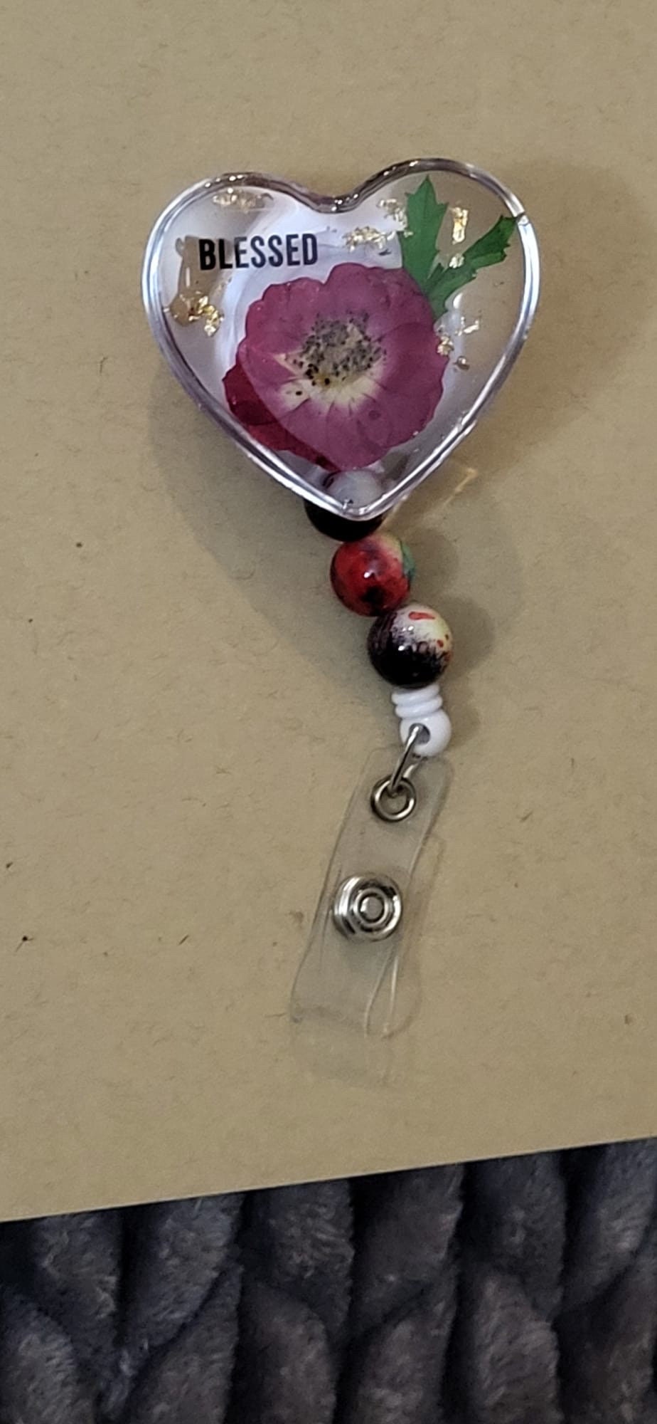 Flower Resin, Heart shape Badge Reel, Custom name badge reel, Nurses Badge Reel, Gift for nurses