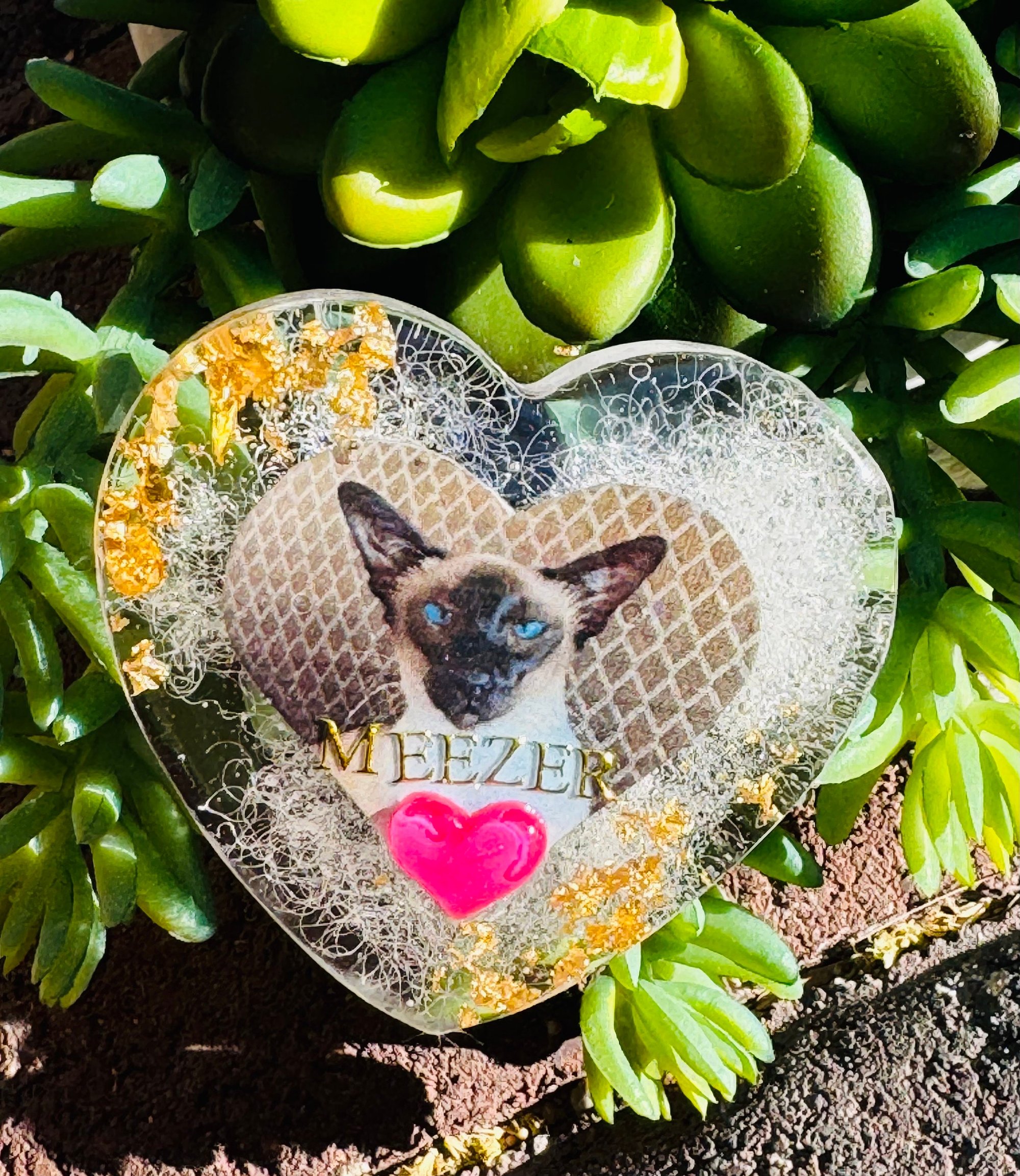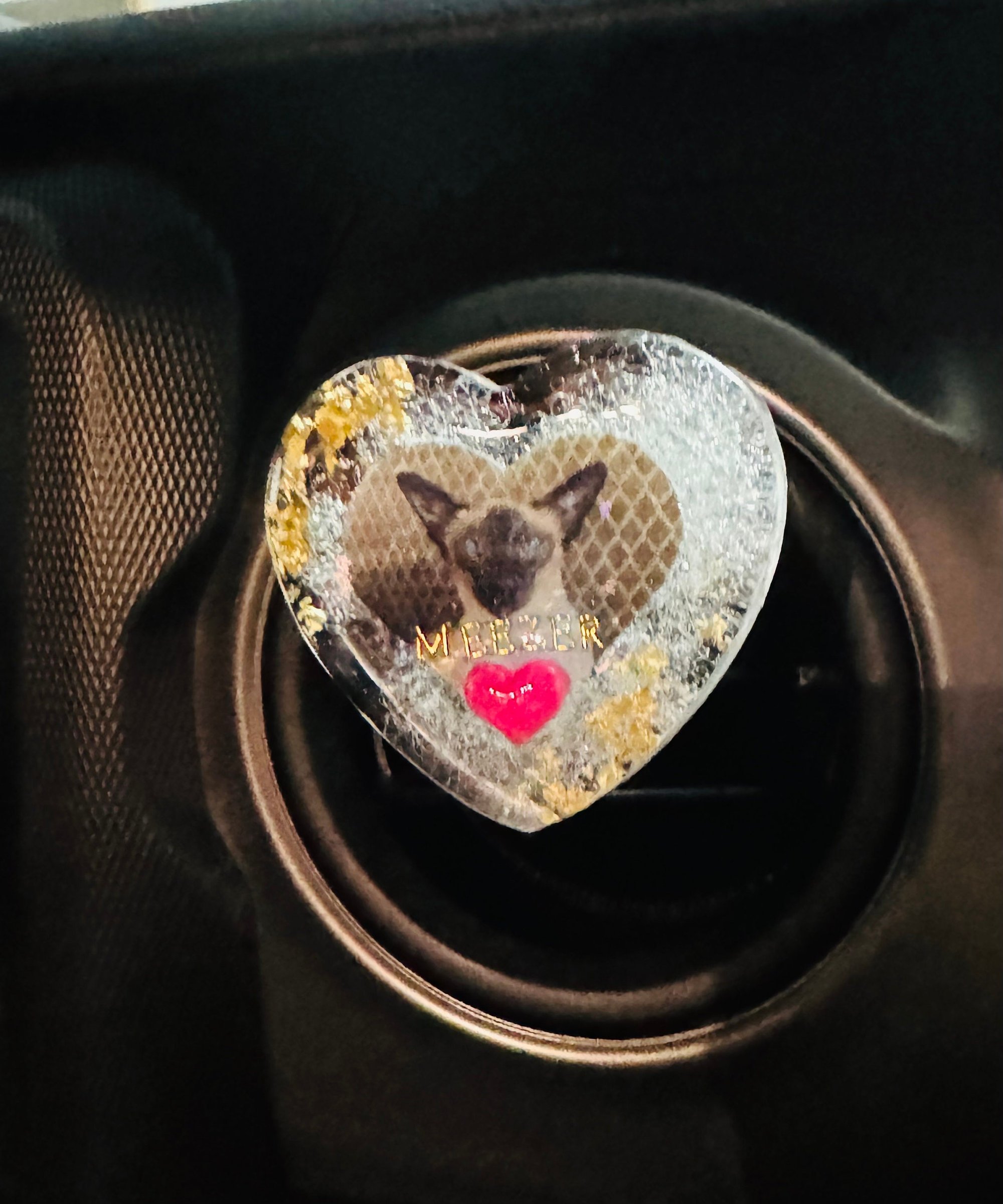 "Keep the memory of your beloved pet close with our heartfelt pet memorial keychain or car vent clip. Each piece is lovingly handcrafted by me!
