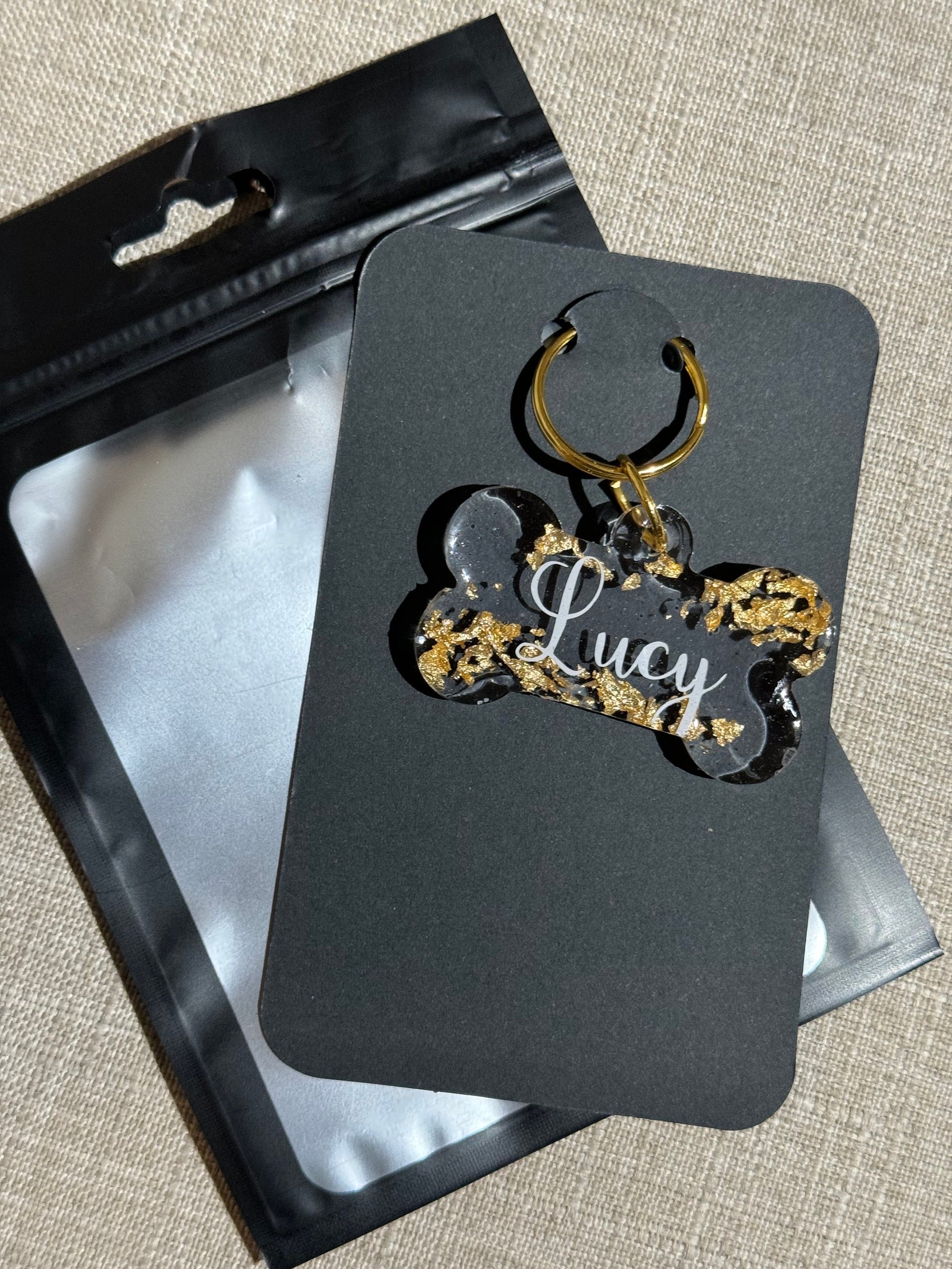 - Because each tag is handmade, it may vary slightly from the picture and no two will look the same. There may be tiny air bubbles, which are common when using resin.